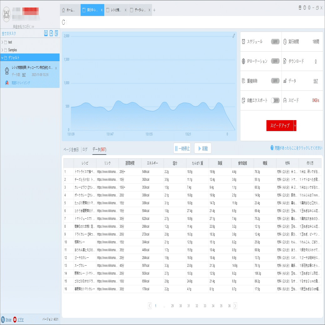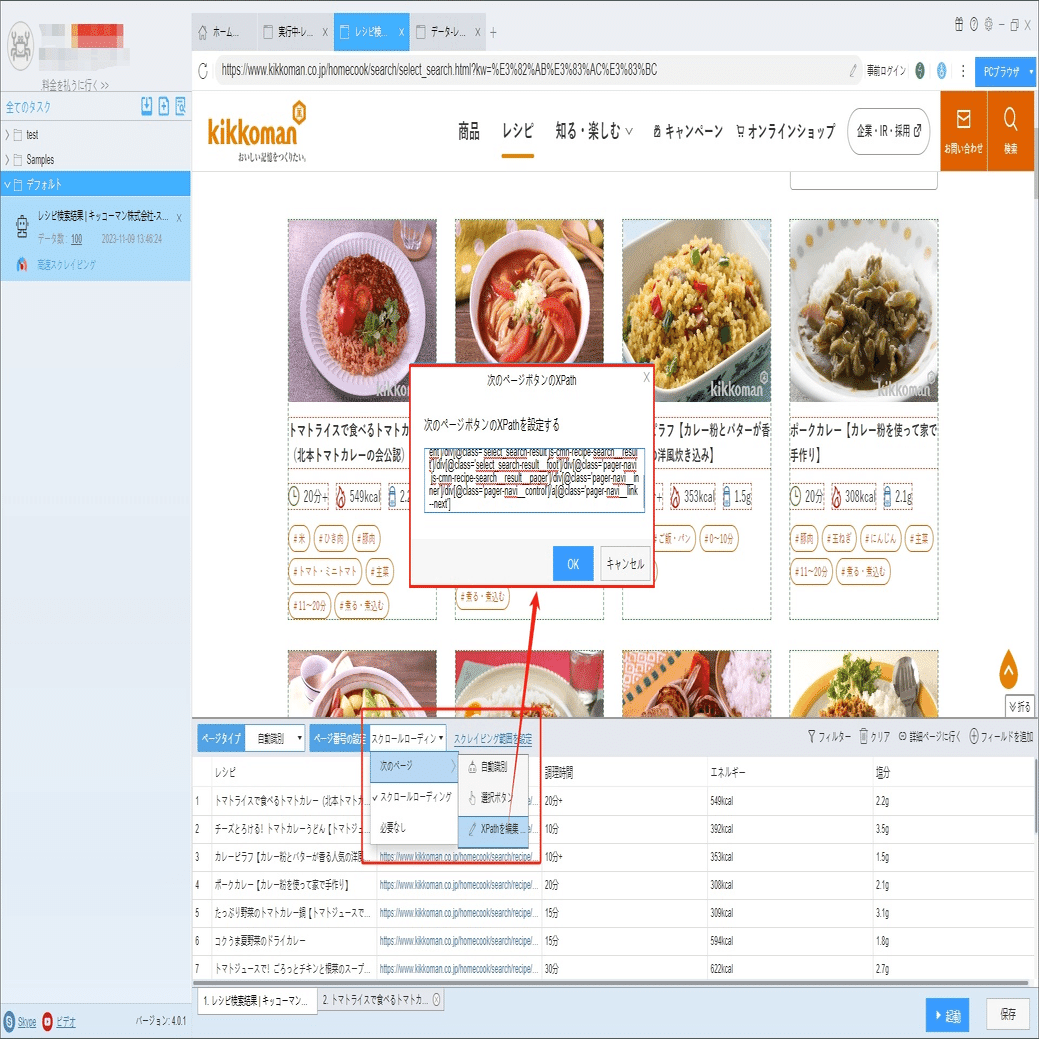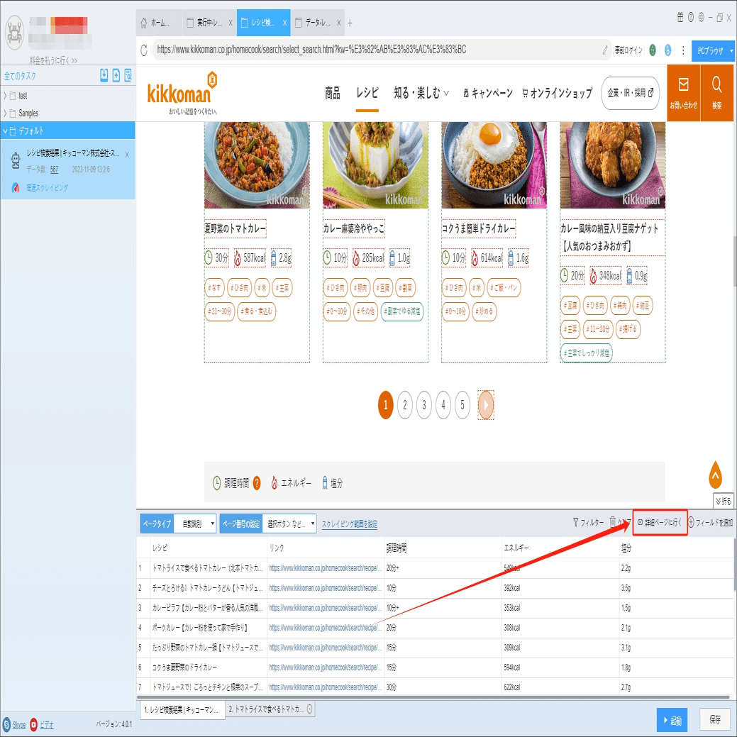 ソフトウェアは自動的に詳細ページのリンクを抽出できます。「詳細ページ行く」機能を利用して、レシピの材料詳細、作り方などの情報をスクレイピングできます。