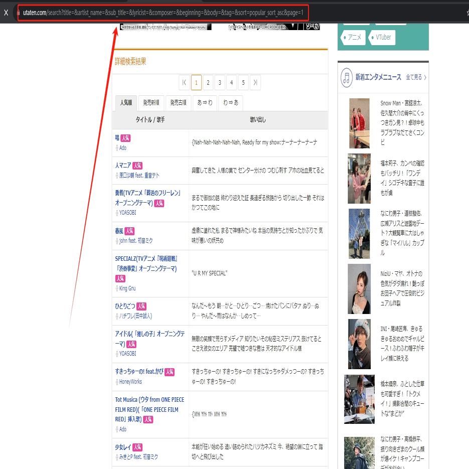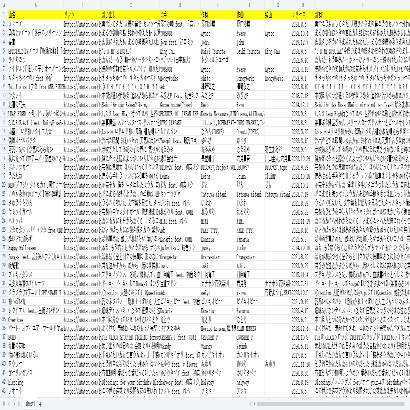 楽曲・音楽!Utatenから歌詞をスクレイピングする