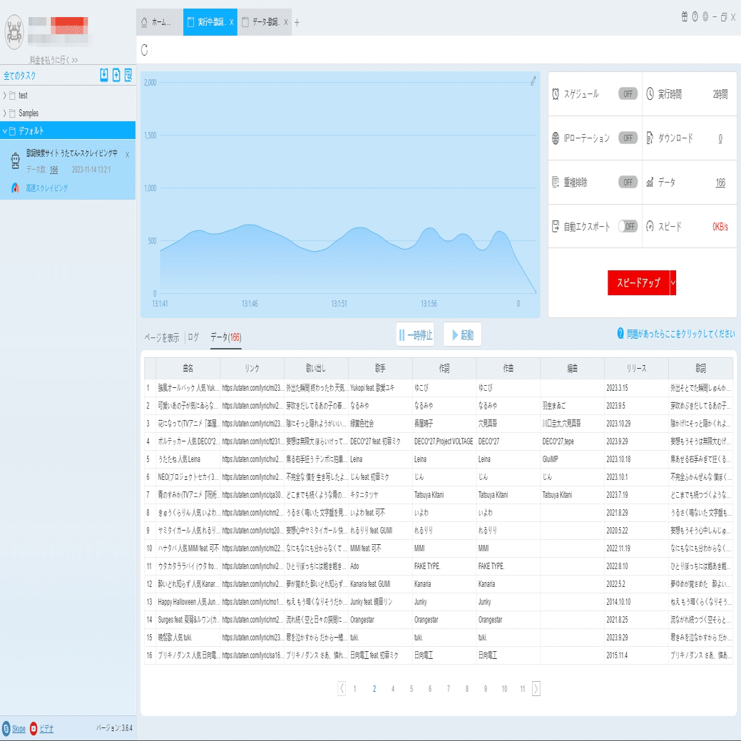 必要に応じて、スケジュール、アンチブロック、自動エクスポート、写真のダウンロード、スピードブーストを設定できます。サーバーに負荷しないように、遅延時間を設定してください。5秒以上を推薦します。スクレイピングタスクを配置する方法については、下記のチュートリアルをご参照ください。