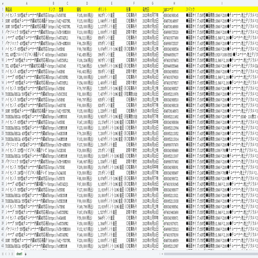 家電と暮らし!家電通販のエディオンから商品の情報をスクレイピング