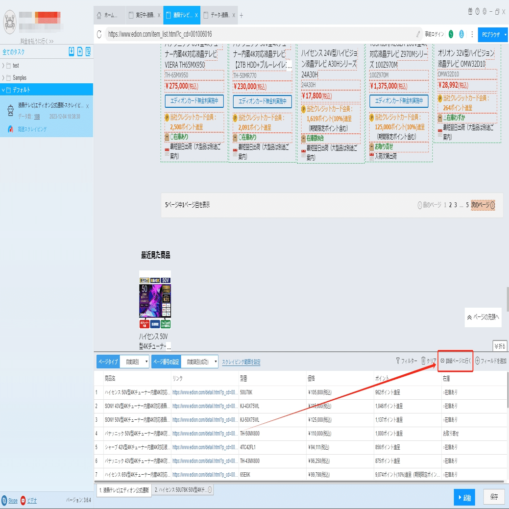 ソフトウェアの「詳細ページに行く」機能を利用し、発売日、JANコードなどの情報を抽出します。