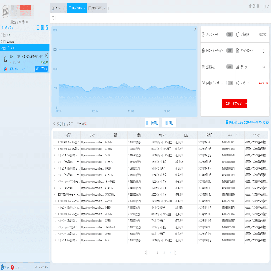 必要に応じて、スケジュール、アンチブロック、自動エクスポート、写真のダウンロード、スピードブーストを設定できます。サーバーに負荷しないように、遅延時間を設定してください。5秒以上を推薦します。スクレイピングタスクを配置する方法については、下記のチュートリアルをご参照ください。