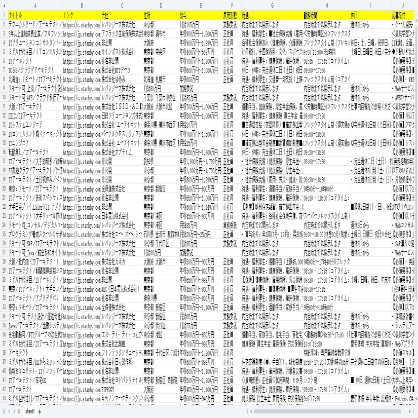 就職・転職!スタンバイから求人情報をスクレイピングする