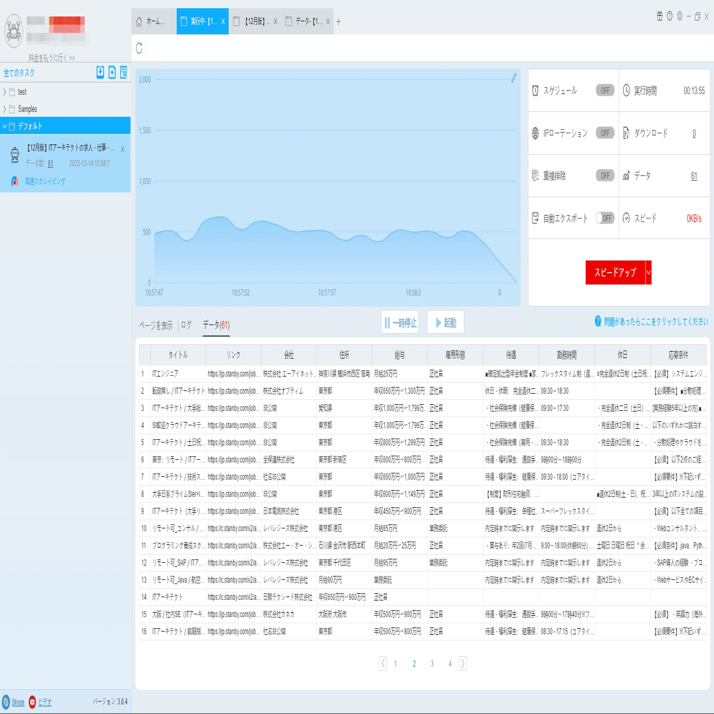 必要に応じて、スケジュール、アンチブロック、自動エクスポート、写真のダウンロード、スピードブーストを設定できます。サーバーに負荷しないように、遅延時間を設定してください。5秒以上を推薦します。スクレイピングタスクを配置する方法については、下記のチュートリアルをご参照ください。