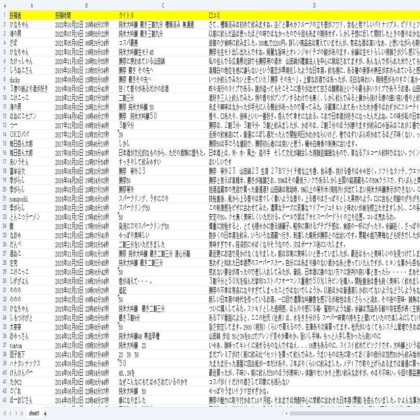 掲示板・評価!日本酒物語からお酒の口コミをスクレイピンする