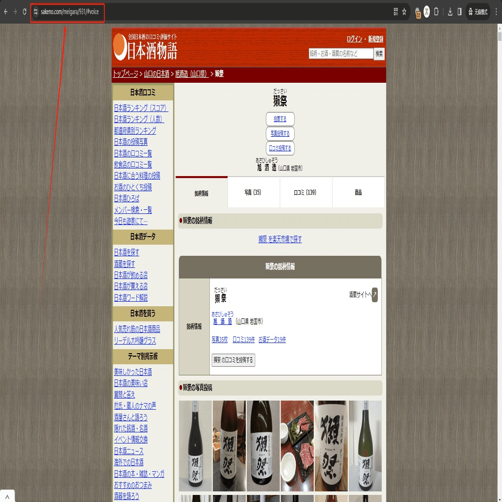 今回はある人気お酒のクチコミページを例として、そのスクレイピング方法を紹介します。まず、URLをコピーしてください。