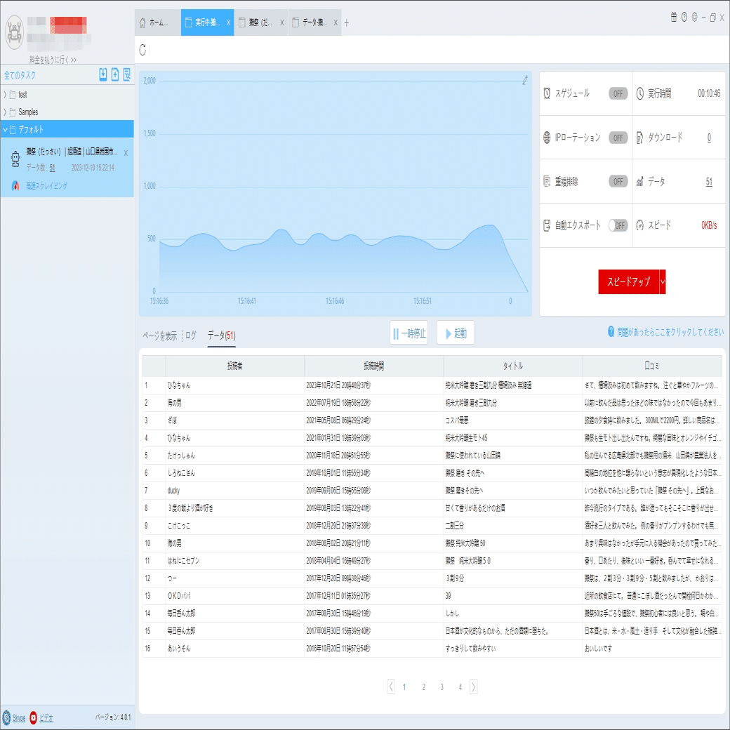 必要に応じて、スケジュール、アンチブロック、自動エクスポート、写真のダウンロード、スピードブーストを設定できます。サーバーに負荷しないように、遅延時間を設定してください。5秒以上を推薦します。スクレイピングタスクを配置する方法については、下記のチュートリアルをご参照ください。