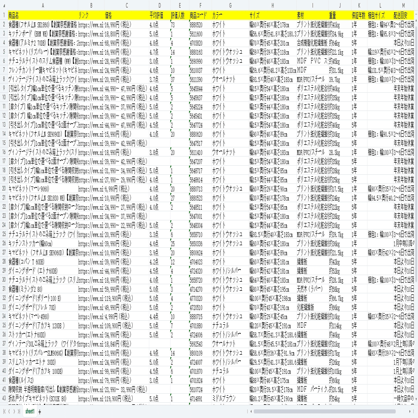 家具通販!ニトリネットから商品の情報をスクレイピングする
