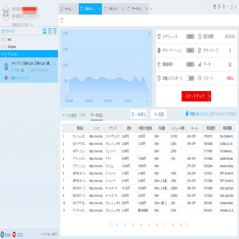 必要に応じて、スケジュール、アンチブロック、自動エクスポート、写真のダウンロード、スピードブーストを設定できます。サーバーに負荷しないように、遅延時間を設定してください。5秒以上を推薦します。スクレイピングタスクを配置する方法については、下記のチュートリアルをご参照ください。