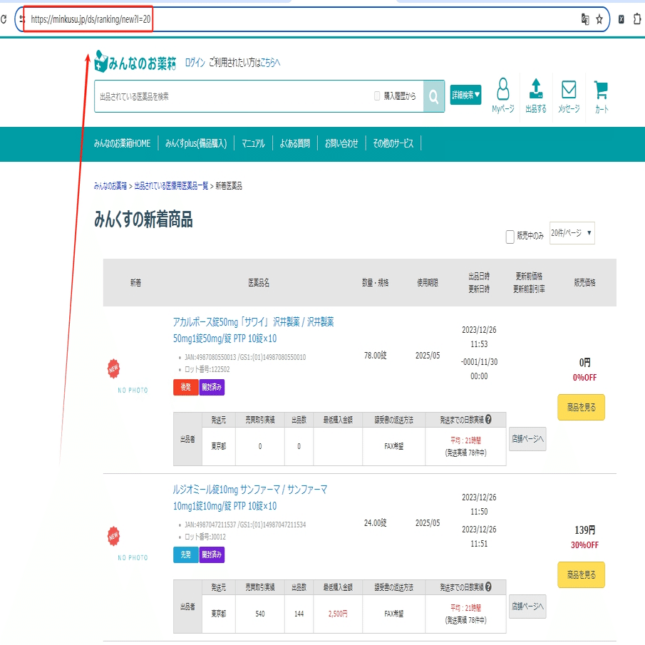 今回はみんくすの新着商品一覧ページを例として、そのスクレイピング方法を紹介します。まず、URLをコピーしてください。