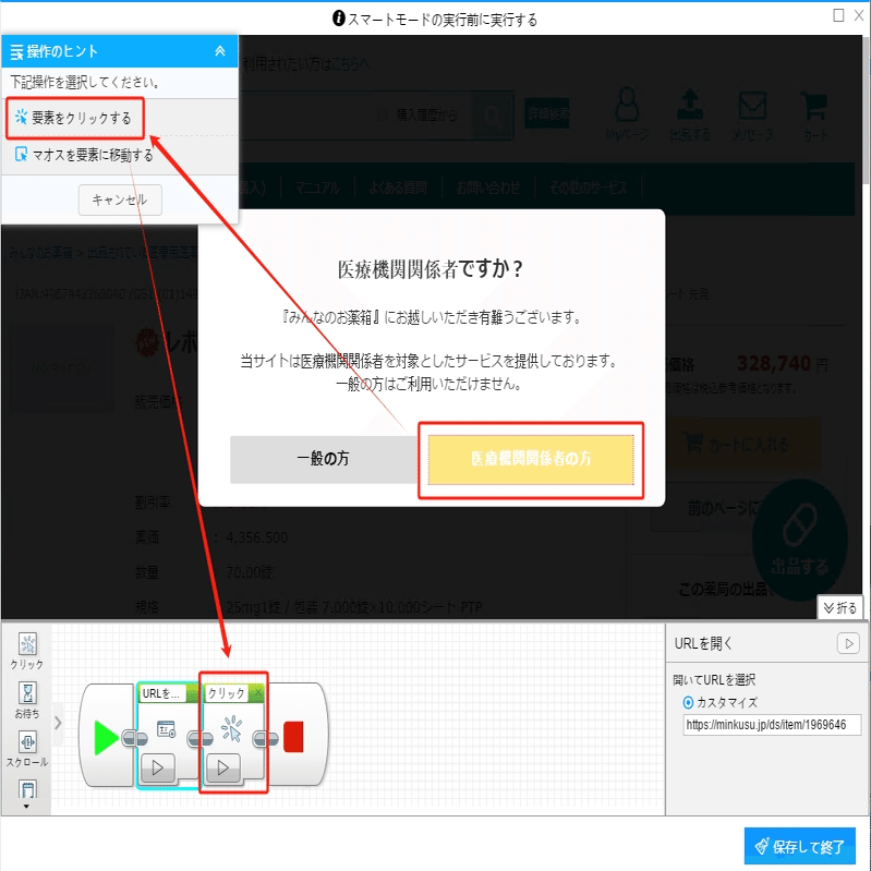 みんなのお薬箱は医療機関限定のサイトですから、必ず事前操作機能を利用して、医療機関に選択してください。