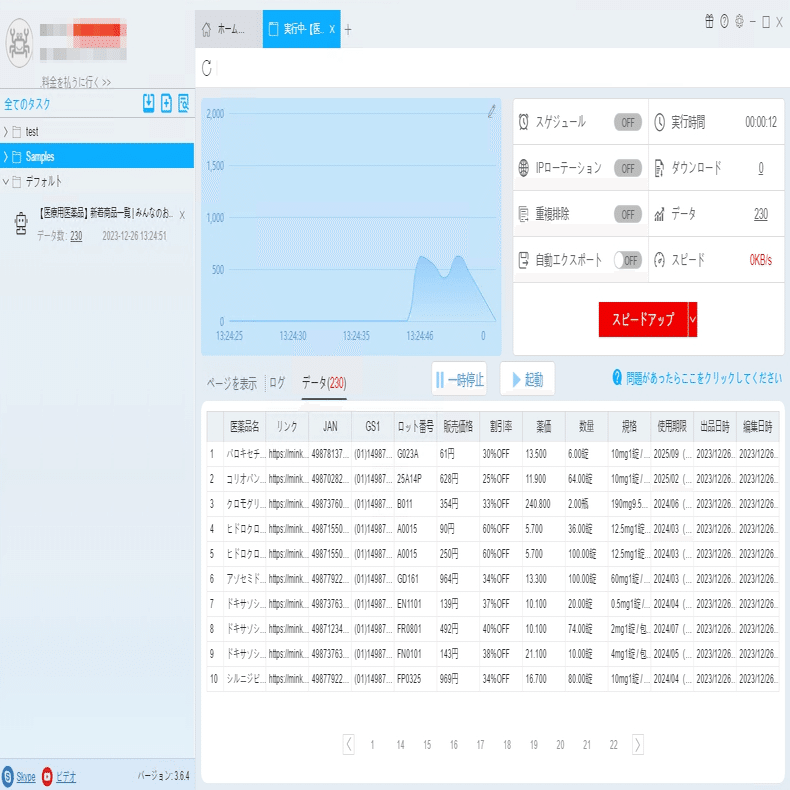 必要に応じて、スケジュール、アンチブロック、自動エクスポート、写真のダウンロード、スピードブーストを設定できます。サーバーに負荷しないように、遅延時間を設定してください。5秒以上を推薦します。スクレイピングタスクを配置する方法については、下記のチュートリアルをご参照ください。