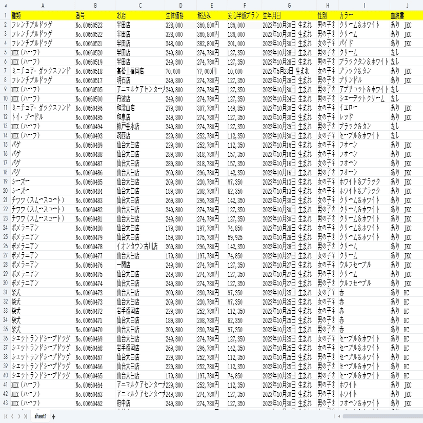ペットショップ!Coo&RIKUから子犬の情報をスクレイピングする