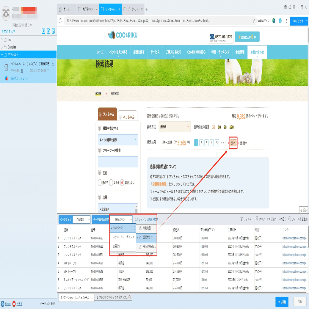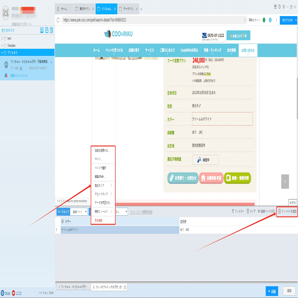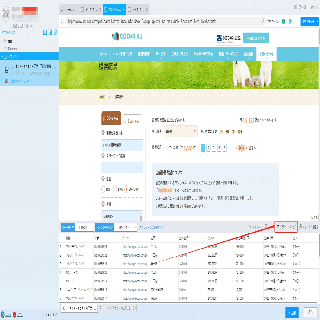 ソフトウェアの「詳細ページに行く」機能を利用し、血統書、カラーなどの情報を抽出します。