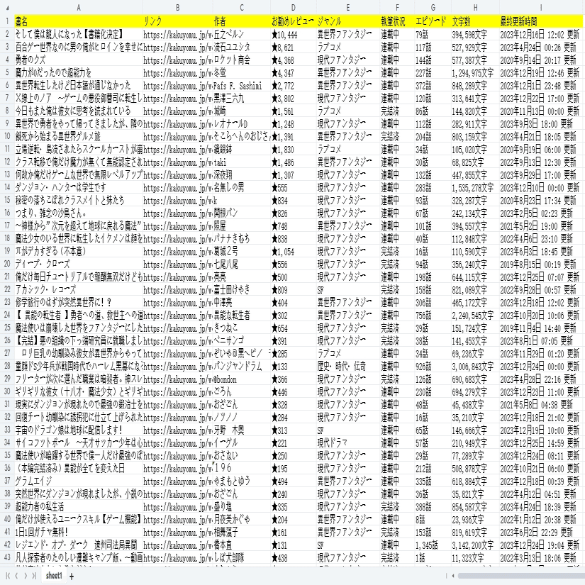 Web小説サイト!カクヨムから小説情報をスクレイピングする