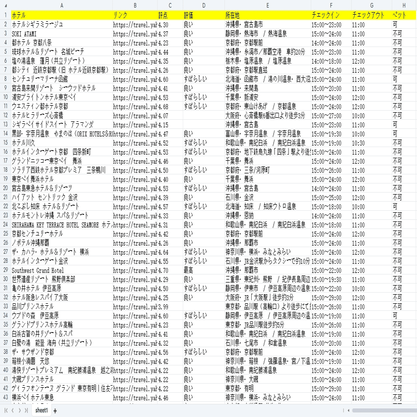 旅行・宿泊!Yahooトラベルからホテルの情報をスクレイピング