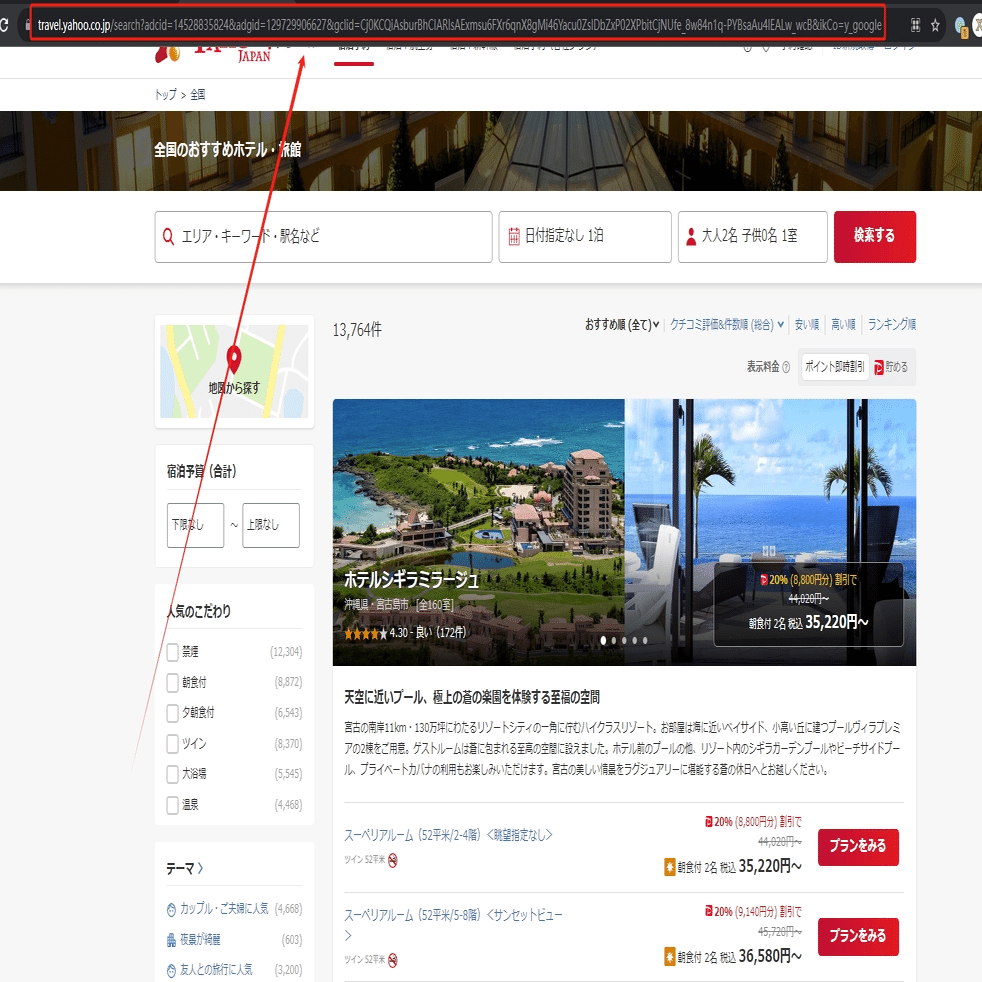 今回は日本全国のおすすめホテル・旅館の検索結果一覧ページを例として、そのスクレイピング方法を紹介します。まず、URLをコピーしてください。