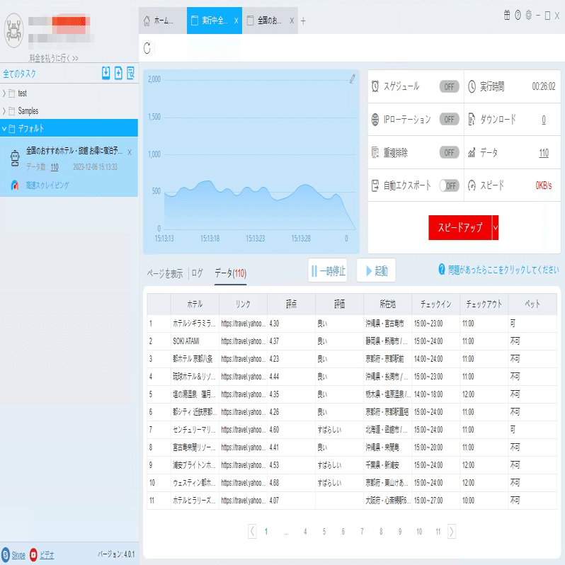 必要に応じて、スケジュール、アンチブロック、自動エクスポート、写真のダウンロード、スピードブーストを設定できます。サーバーに負荷しないように、遅延時間を設定してください。5秒以上を推薦します。スクレイピングタスクを配置する方法については、下記のチュートリアルをご参照ください。