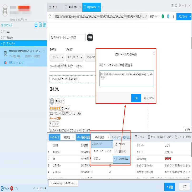 ScrapeStormは自動的にリスト要素とページボタンを識別できます。Xpathで識別する機能も提供します。下記のチュートリアルも参照してください。