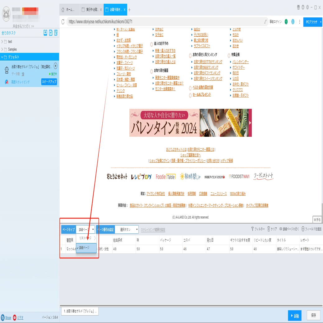 お土産・特産品!おとりよせネットからレポートをスクレイピング