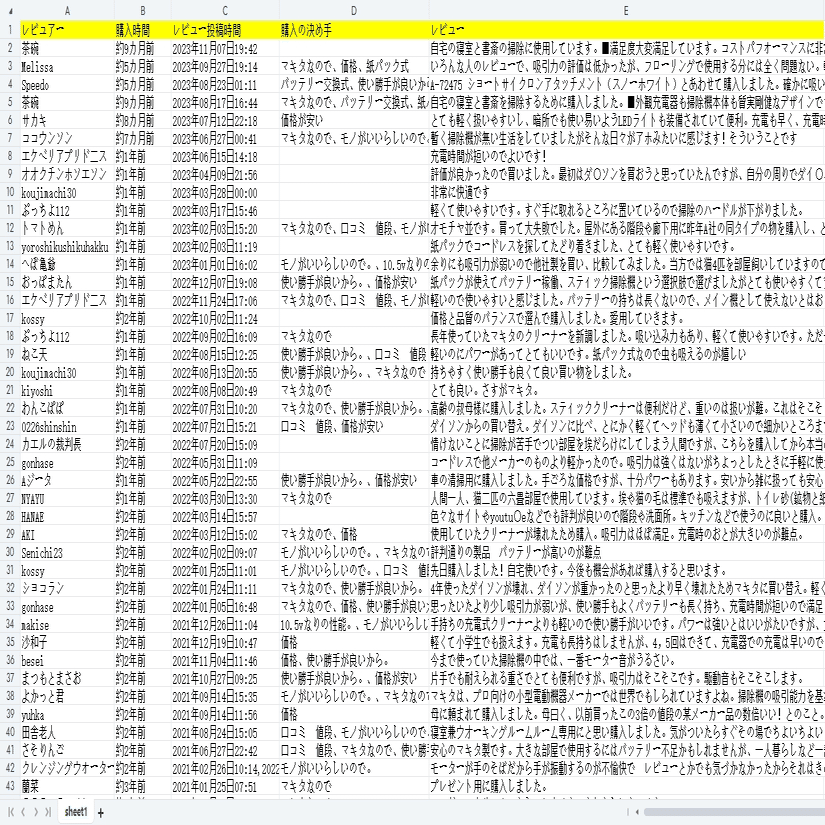 家電通販!ヨドバシカメラから商品のレビューをスクレイピング