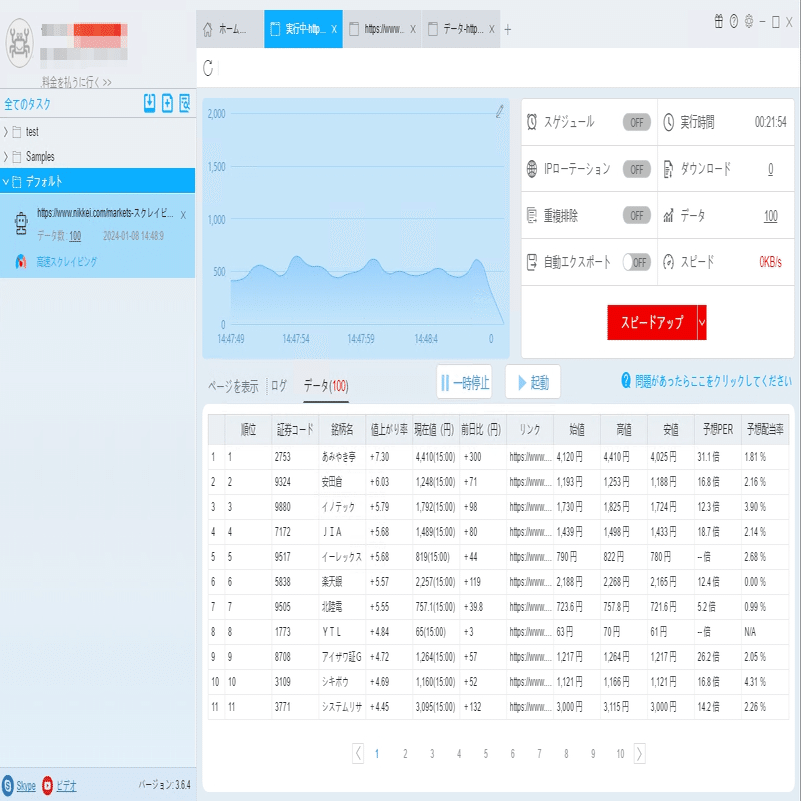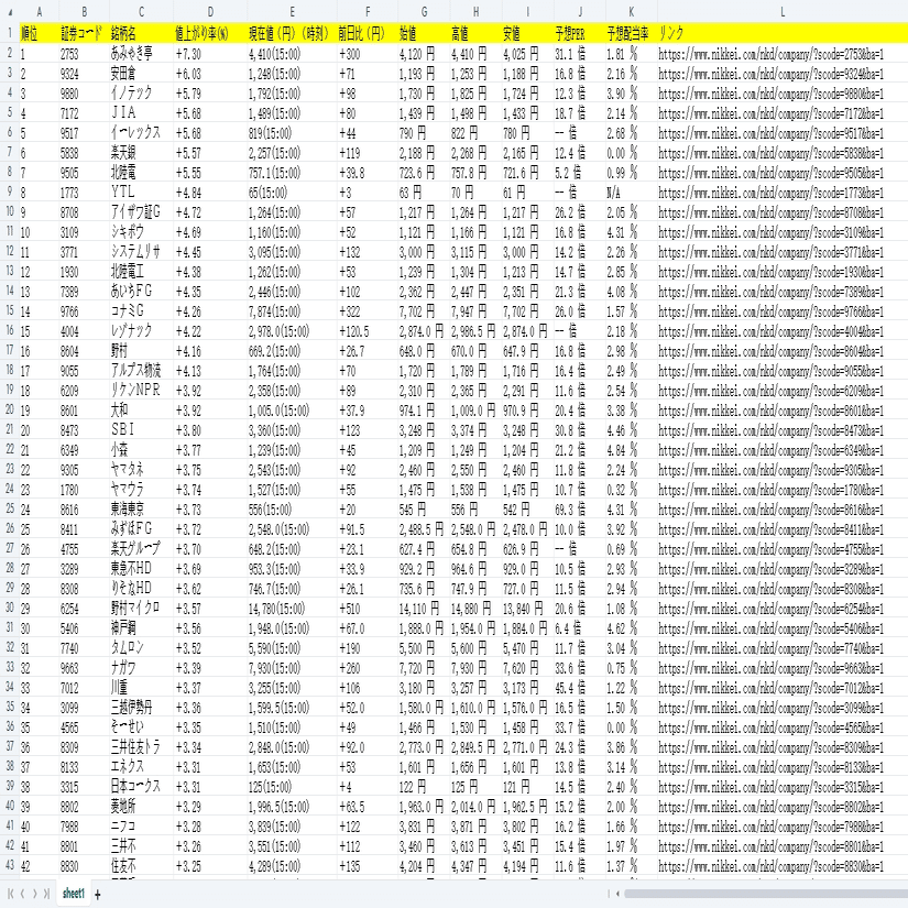 株式投資!日経新聞から株価の値上がりランキングをスクレイピング