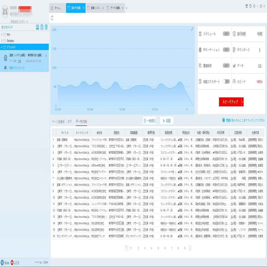 必要に応じて、スケジュール、アンチブロック、自動エクスポート、写真のダウンロード、スピードブーストを設定できます。サーバーに負荷しないように、遅延時間を設定してください。5秒以上を推薦します。スクレイピングタスクを配置する方法については、下記のチュートリアルをご参照ください。
