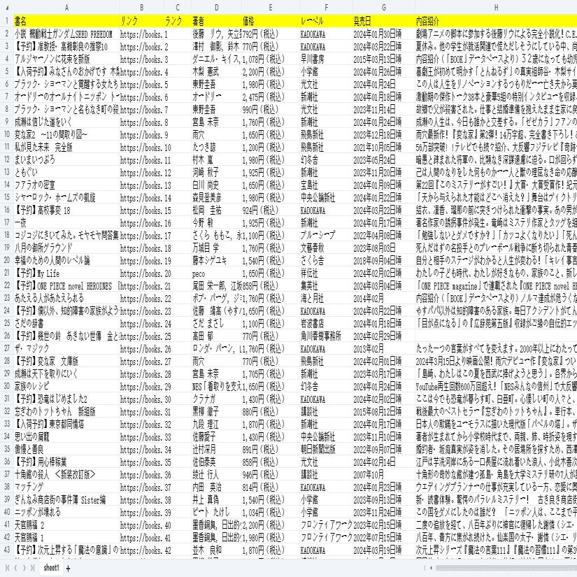 書籍・オススメ本!楽天Koboから小説の情報をスクレイピング