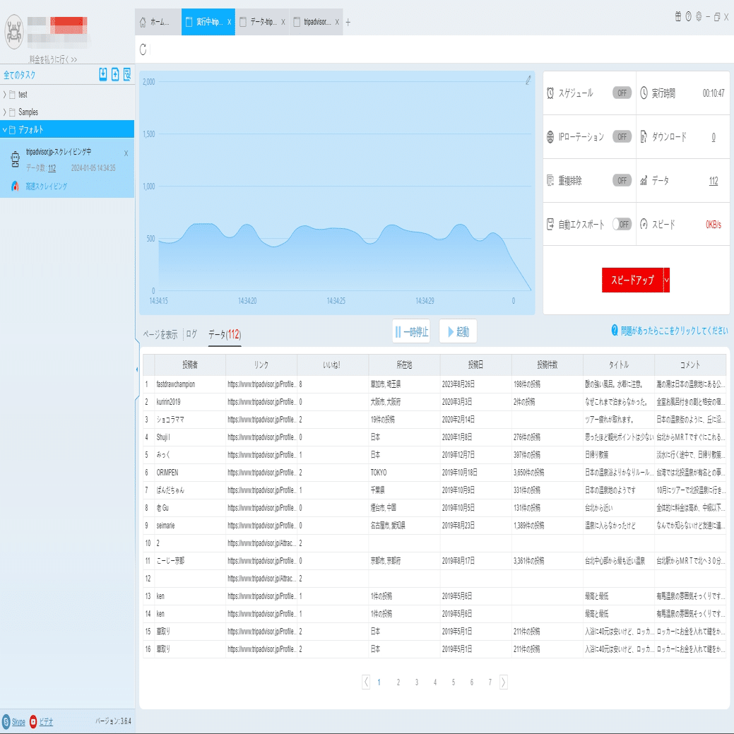 必要に応じて、スケジュール、アンチブロック、自動エクスポート、写真のダウンロード、スピードブーストを設定できます。サーバーに負荷しないように、遅延時間を設定してください。5秒以上を推薦します。スクレイピングタスクを配置する方法については、下記のチュートリアルをご参照ください。