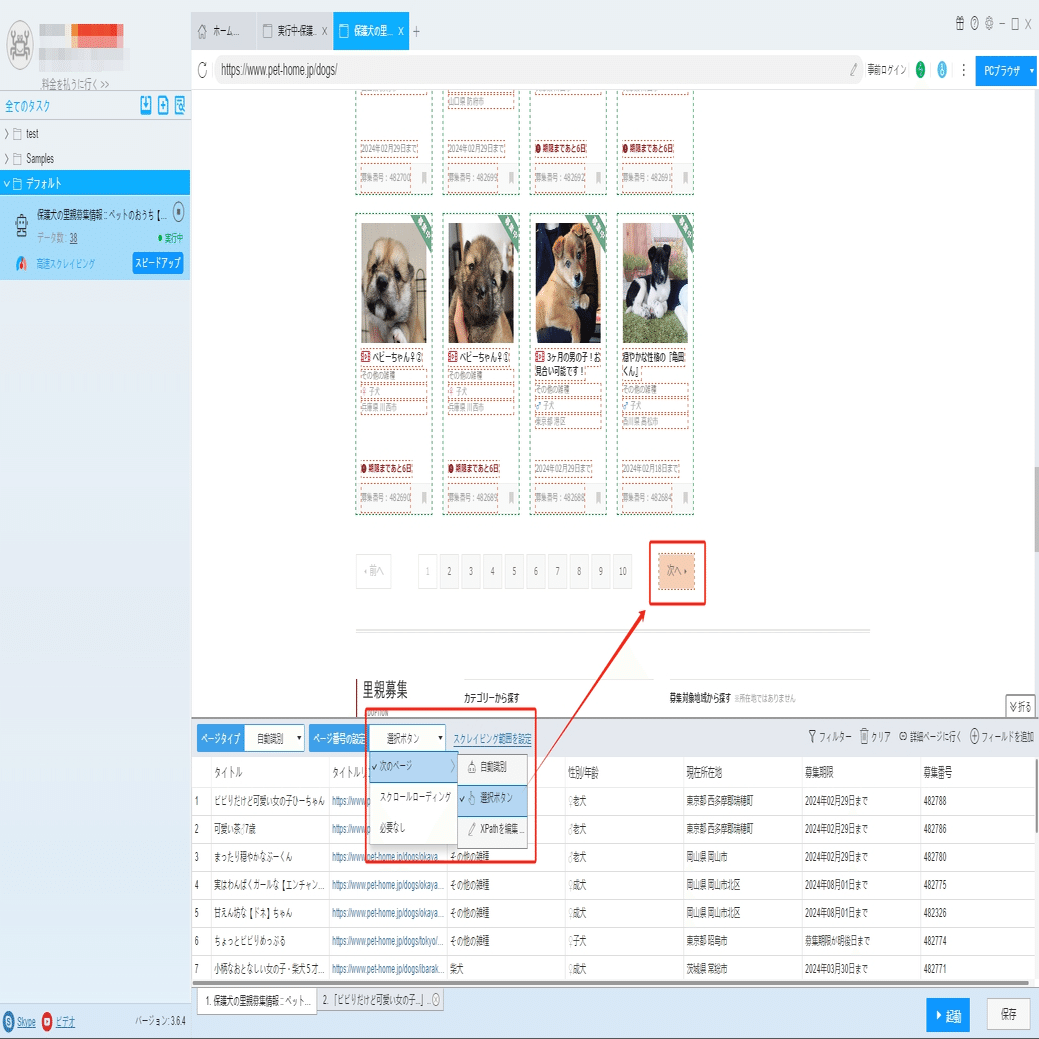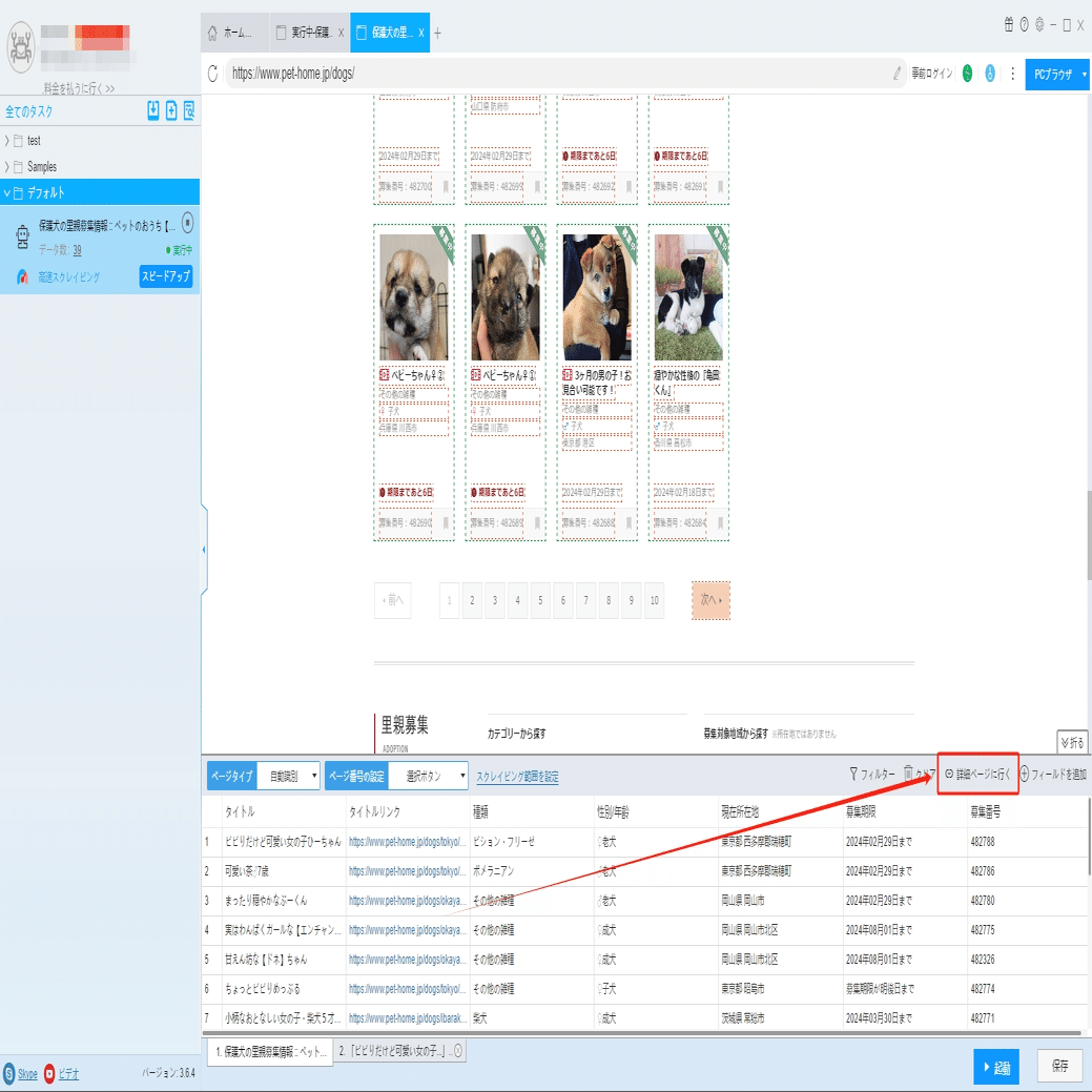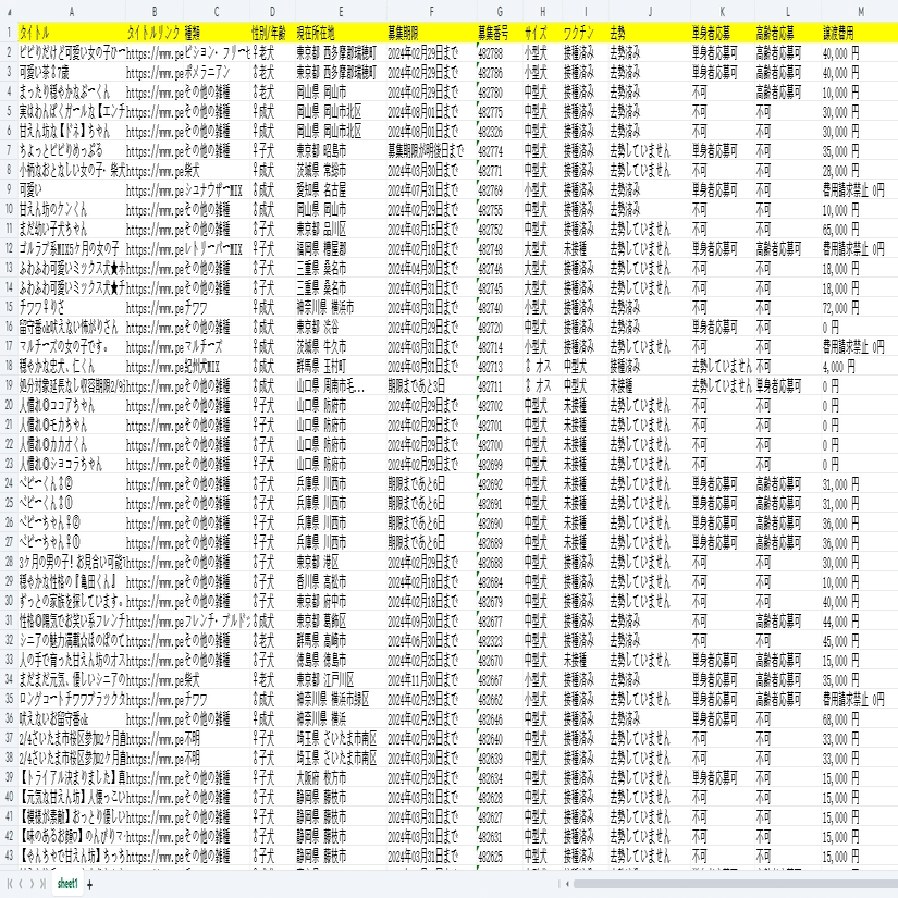 ペット!ペットのおうちから犬の里親募集情報をスクレイピング