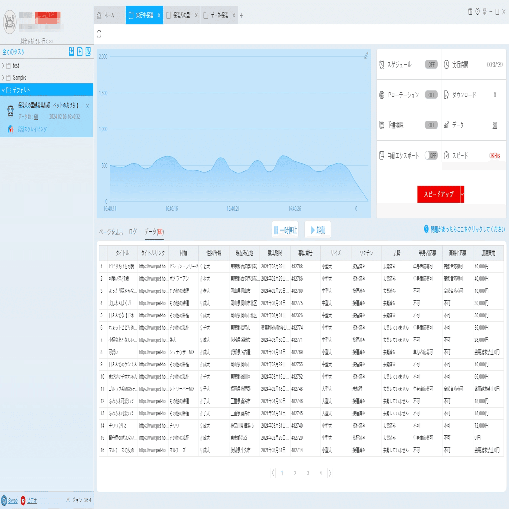 必要に応じて、スケジュール、アンチブロック、自動エクスポート、写真のダウンロード、スピードブーストを設定できます。サーバーに負荷しないように、遅延時間を設定してください。5秒以上を推薦します。スクレイピングタスクを配置する方法については、下記のチュートリアルをご参照ください。