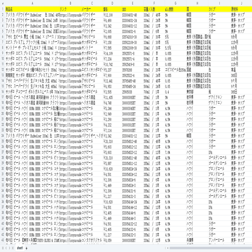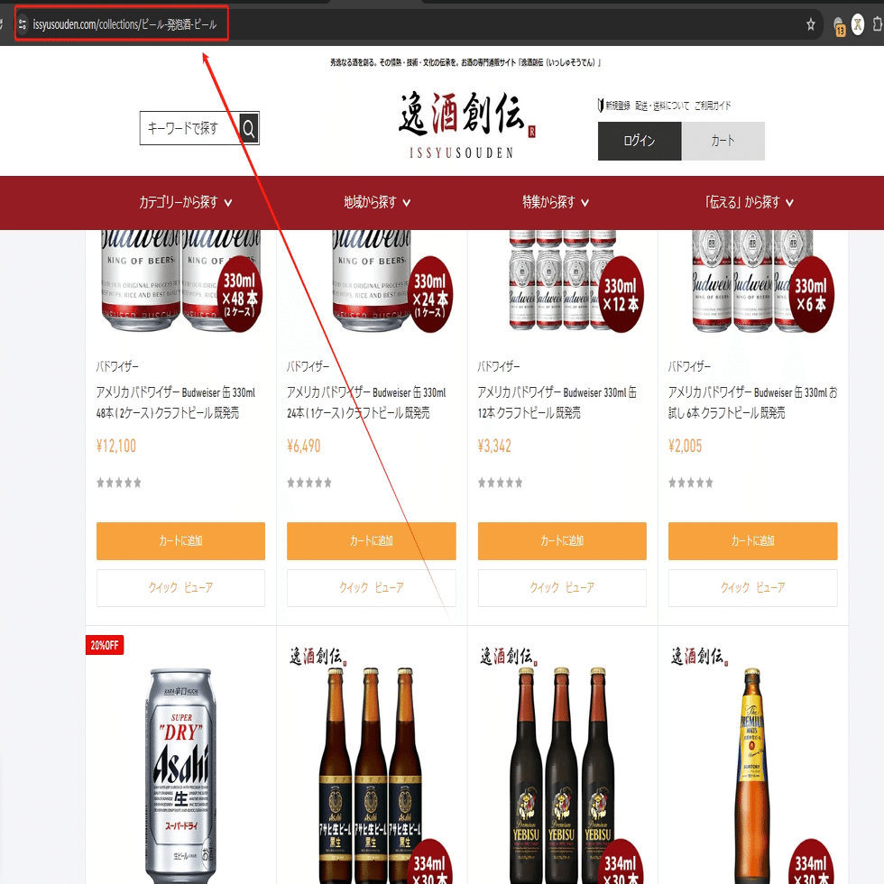 今回はビールの商品の情報を収得し、そのスクレイピング方法を紹介します。まず、URLをコピーしてください。