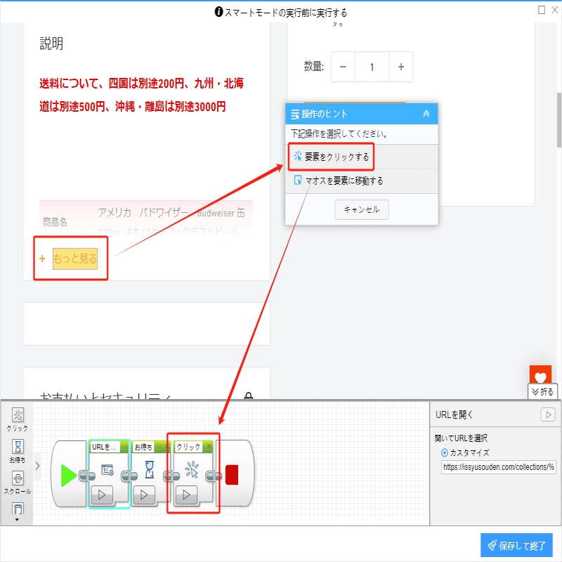 事前操作機能を利用し、メーカー、Alc度数などの商品説明を展開できます。