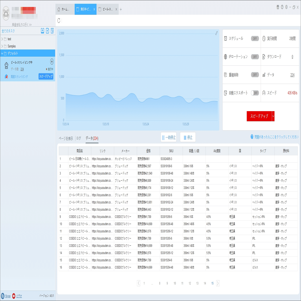 必要に応じて、スケジュール、アンチブロック、自動エクスポート、写真のダウンロード、スピードブーストを設定できます。サーバーに負荷しないように、遅延時間を設定してください。5秒以上を推薦します。スクレイピングタスクを配置する方法については、下記のチュートリアルをご参照ください。