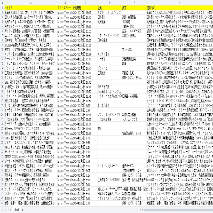ニュースメディア!日経新聞からビジネス速報をスクレイピングする