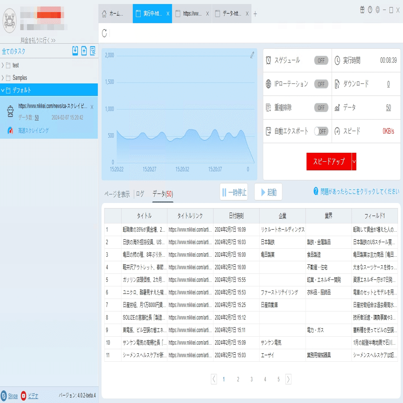 必要に応じて、スケジュール、アンチブロック、自動エクスポート、写真のダウンロード、スピードブーストを設定できます。サーバーに負荷しないように、遅延時間を設定してください。5秒以上を推薦します。スクレイピングタスクを配置する方法については、下記のチュートリアルをご参照ください。