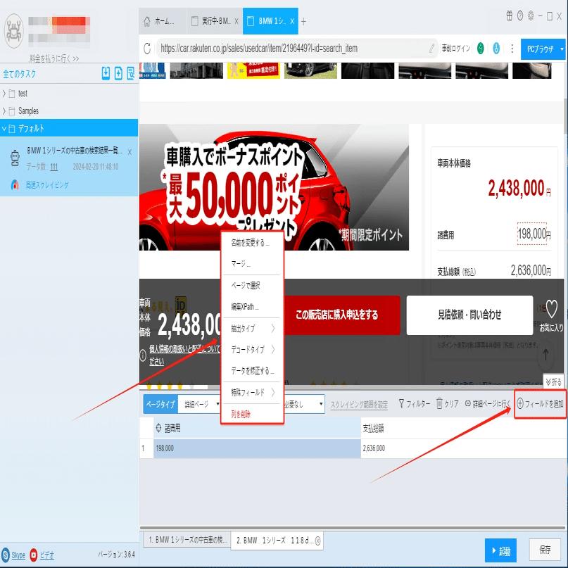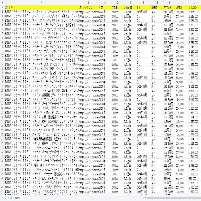 中古車販売・自動車!楽天Carから中古車の情報をスクレイピングする