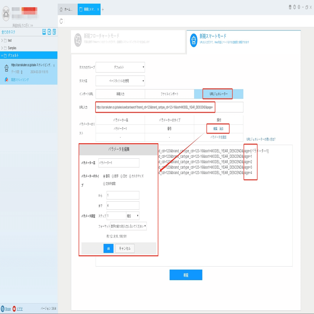 URLジェネレータでURLを入力して、パラメーターを追加画面にページ数を入力し、生成したURLはプレビュー画面でチェックしてください。