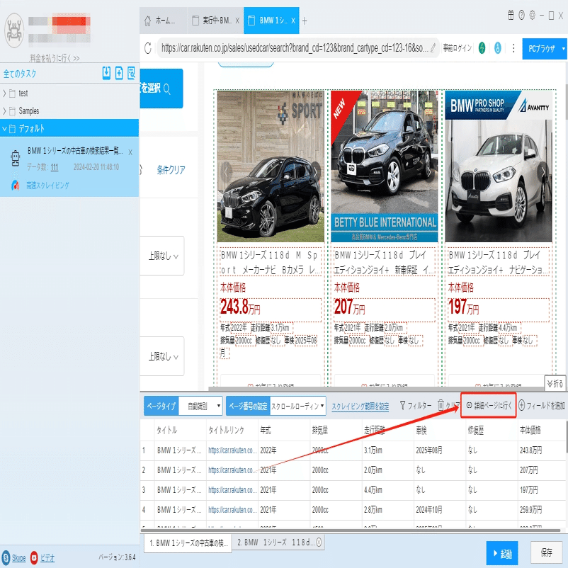 中古車販売・自動車!楽天Carから中古車の情報をスクレイピングする.sst