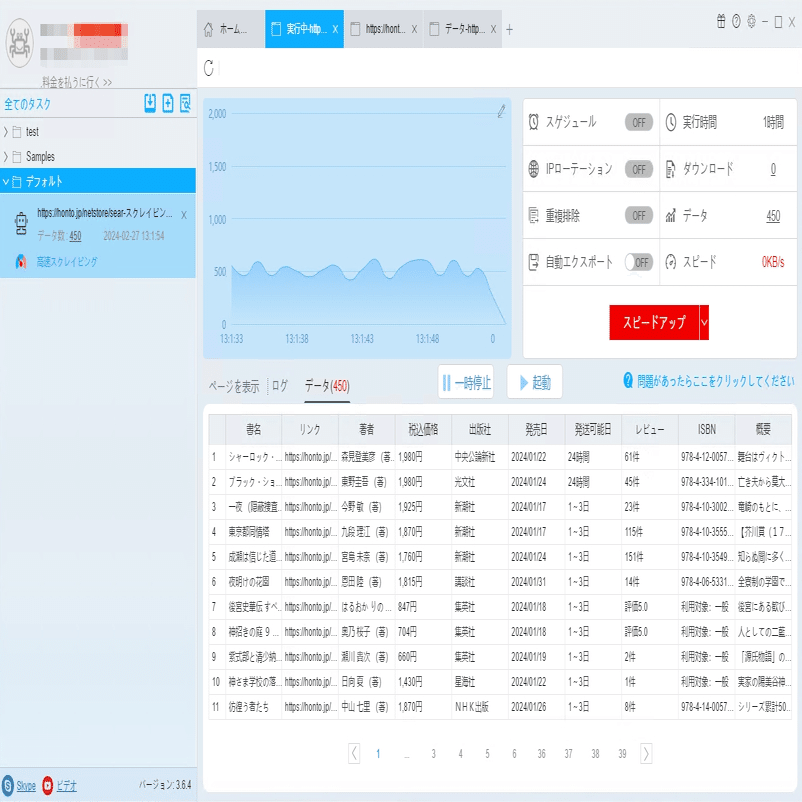 必要に応じて、スケジュール、アンチブロック、自動エクスポート、写真のダウンロード、スピードブーストを設定できます。サーバーに負荷しないように、遅延時間を設定してください。5秒以上を推薦します。スクレイピングタスクを配置する方法については、下記のチュートリアルをご参照ください。