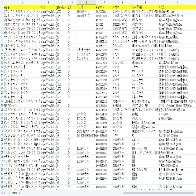 文具・生活雑貨!LOFTネットストアから商品の情報をスクレイピング