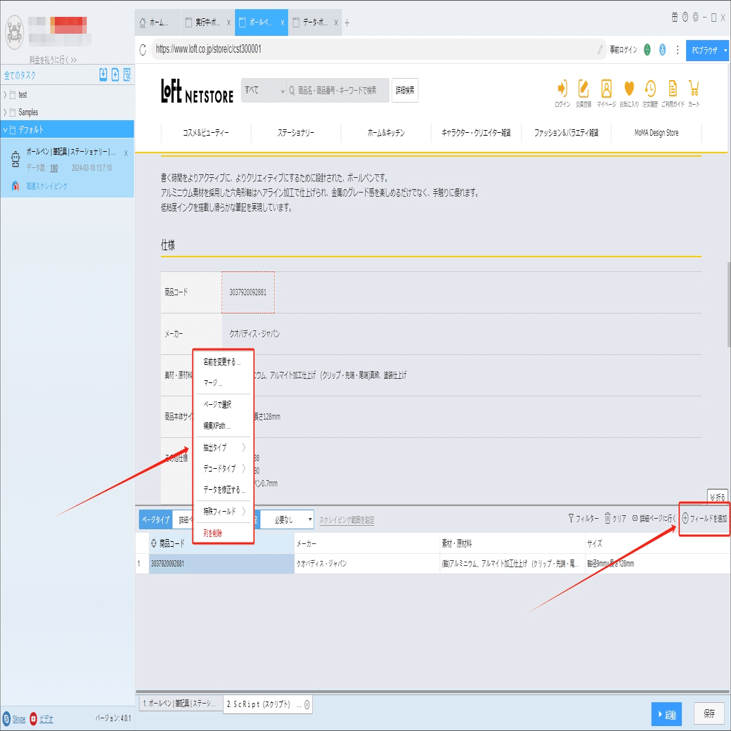 文具・生活雑貨!loftネットストアから商品の情報をスクレイピング.sst