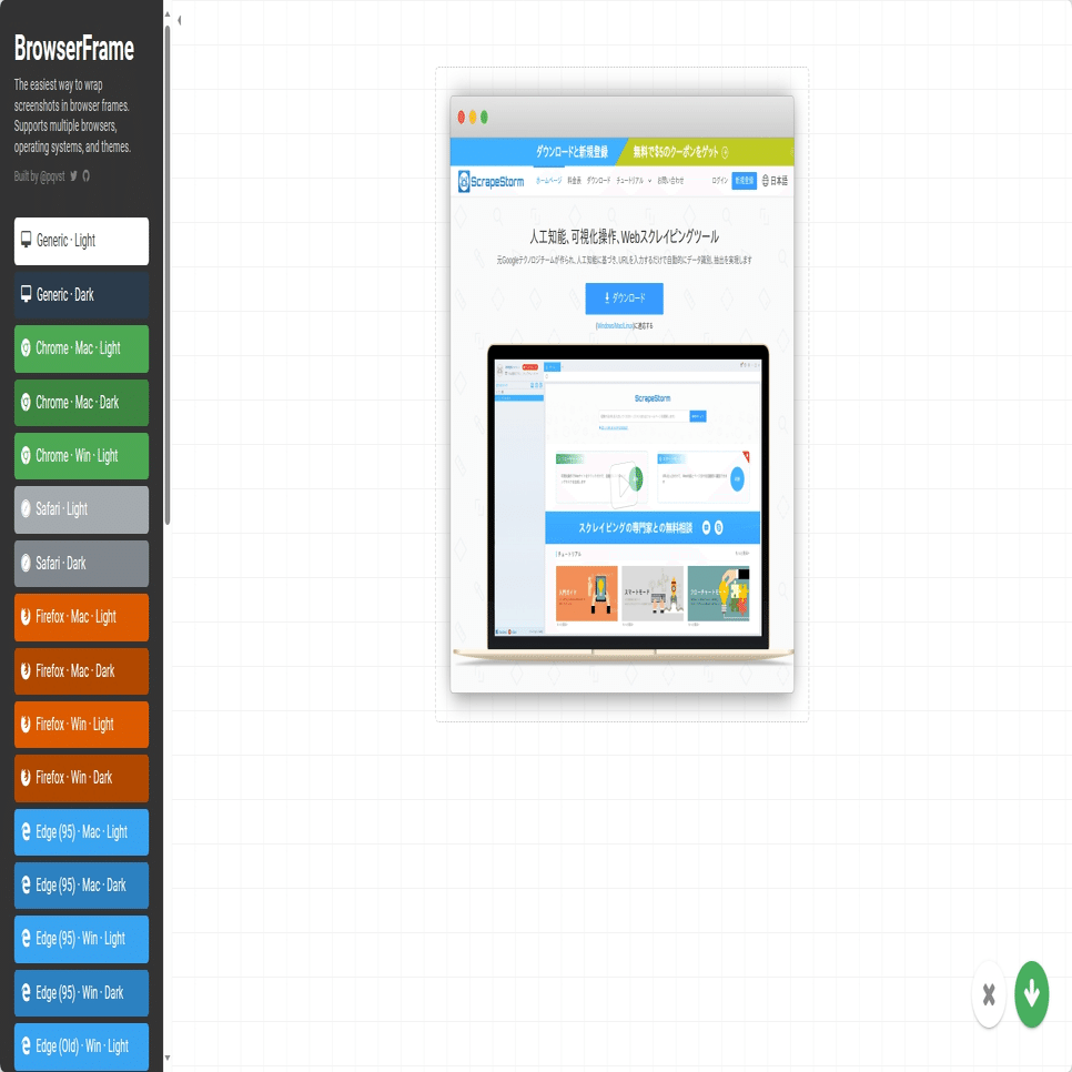 BrowserFrame(ブラウザーフレーム)は、ウェブサイトやウェブアプリケーションのデザインをリアルなブラウザの枠組みの中でプレビューすることができるツールです。これにより、デザイナーや開発者は、完成したウェブページの外観やレイアウトを実際のブラウザと同じように確認することができます。