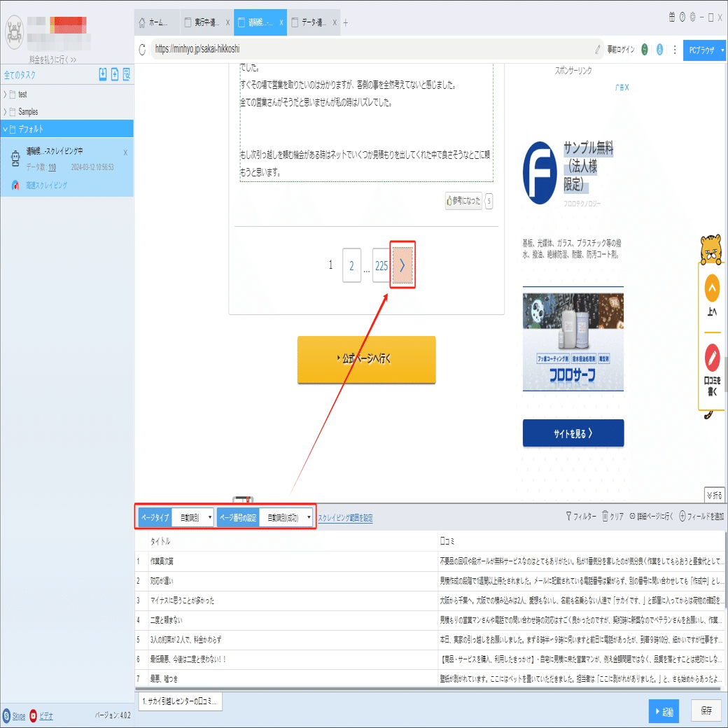 ScrapeStormは自動的にリスト要素とページボタンを識別できます。偶に誤差があれば、手動で選択してください。下記のチュートリアルも参照してください。