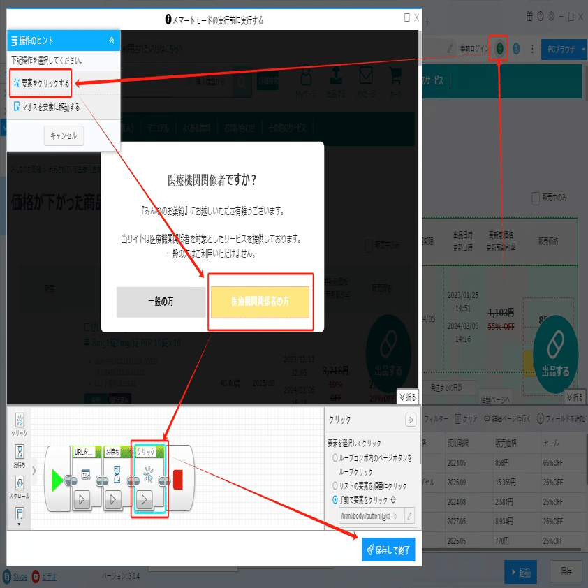 みんなのお薬箱は医療機関限定のサイトですから、必ず事前操作機能を利用して、医療機関に選択してください。