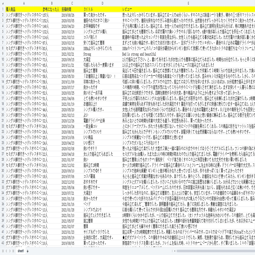家具・インテリア!ニトリネットから商品のレビューをスクレイピング