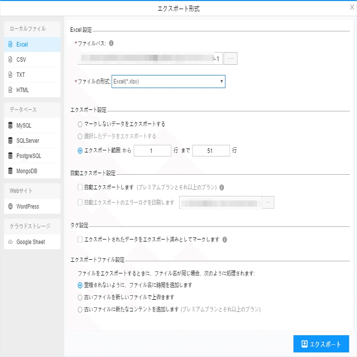 ScrapeStormは、Excel、csv、html、txt、データベース、ローカルなどさまざまなエクスポート方法を提供します。抽出結果のエクスポート方法の詳細には下記のチュートリアルをご参照ください。
