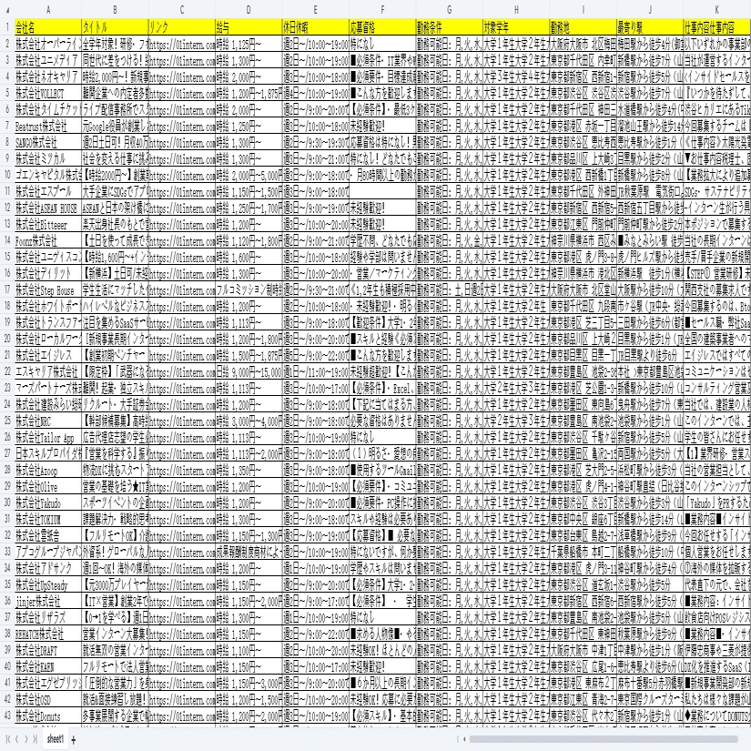 就職・就活!ゼロワンインターンから求人情報をスクレイピングする