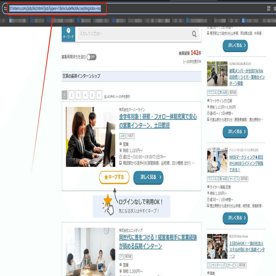 今回は営業の長期インターンシップ一覧ページから書籍の情報を収得し、そのスクレイピング方法を紹介します。まず、URLをコピーしてください。