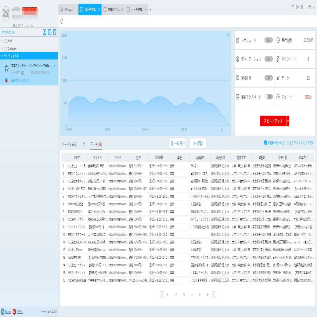 必要に応じて、スケジュール、アンチブロック、自動エクスポート、写真のダウンロード、スピードブーストを設定できます。サーバーに負荷しないように、遅延時間を設定してください。5秒以上を推薦します。スクレイピングタスクを配置する方法については、下記のチュートリアルをご参照ください。
